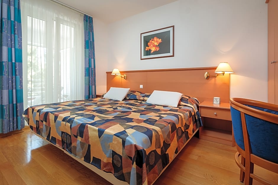 offers a breezy beachfront base just from Jelsa's center. A free outdoor saltwater pool sits beside the shore, complemented by a kids' pool and private parking with free WiFi. Inside, air conditioning, a bar, sun deck, and terrace create social spaces, while a well-equipped kitchen and kitchenette with kitchenware, beach chairs and loungers, and a balcony with a view round out comfortable living.